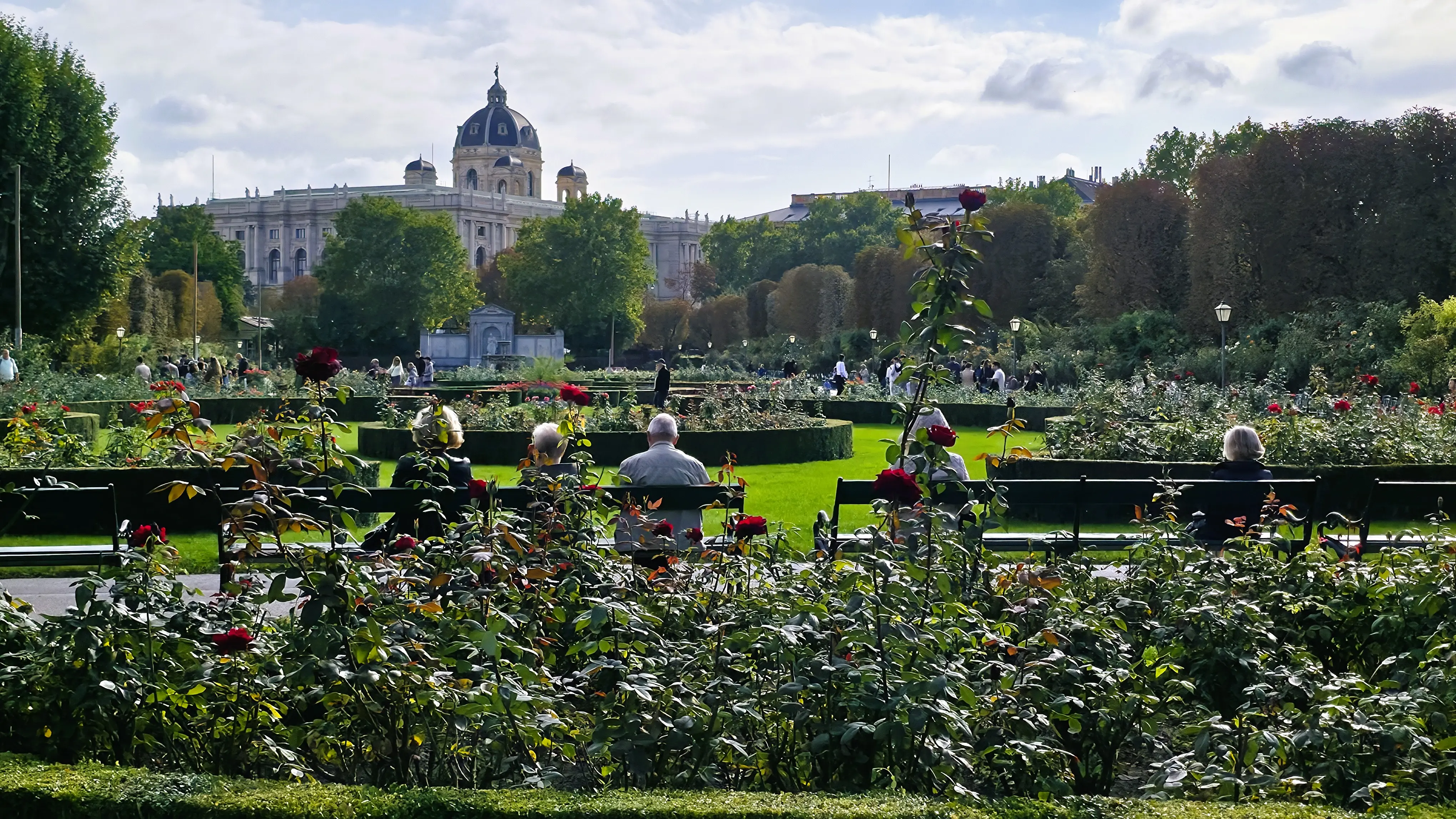 Volksgarten’s design reflects Vienna’s instinctive sense of balance. Symmetry is present, but never rigid; paths are clear, but never severe. Flowerbeds are carefully composed, yet they feel welcoming rather than ornamental. At the heart of this harmony are the garden’s celebrated rose beds, which stretch across the space with quiet confidence. In late spring and summer, thousands of roses bloom in soft layers of color and scent, transforming formal geometry into something gently alive and sensory, and easing the grandeur of the surrounding imperial architecture.