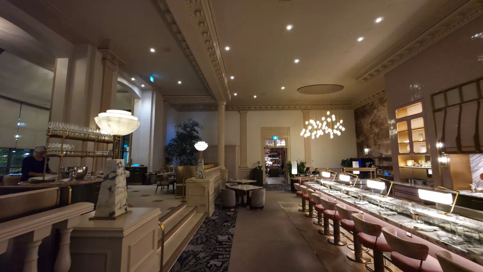 What struck me most was how the room balances grandeur with intimacy. Tables are thoughtfully spaced, conversations hum softly in the background, and there’s a comforting sense that this is a place meant for connection – whether over a celebratory dinner, a quiet glass of wine, or one of Zoe’s famous afternoon teas earlier in the day. In the evening, the ambiance deepens. Candlelight, polished wood, and the gentle rhythm of service give the room a glow that feels timeless, almost cinematic.